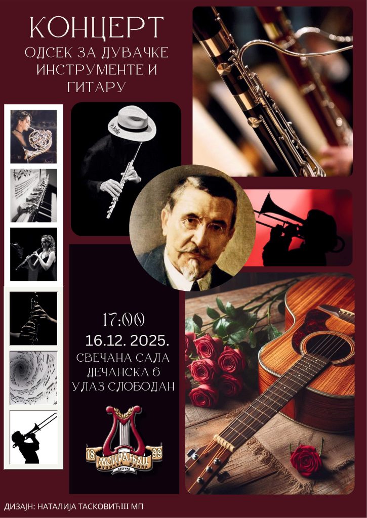 16. 12. уто – Концерт одсека за дувачке инструменте и гитару, 17:00, Дечанска 6;