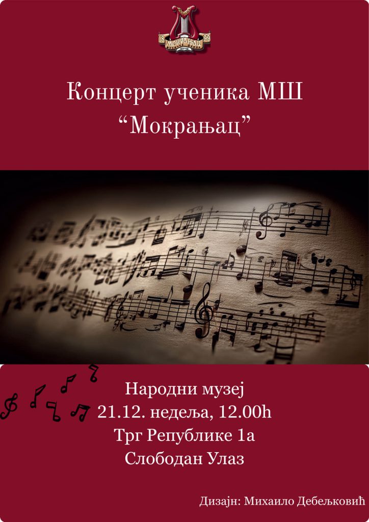 21. 12. нед – Концерт ученика МШ Мокрањац – Народни музеј, 12:00 Трг републике 1а;