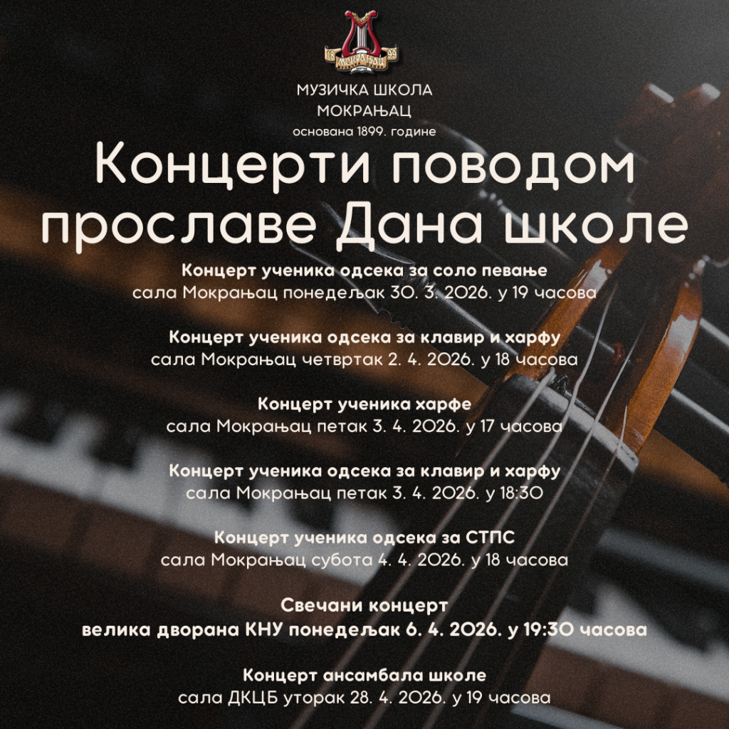 You are currently viewing КОНЦЕРТИ ПОВОДОМ ПРОСЛАВЕ ДАНА ШКОЛЕ 2026.